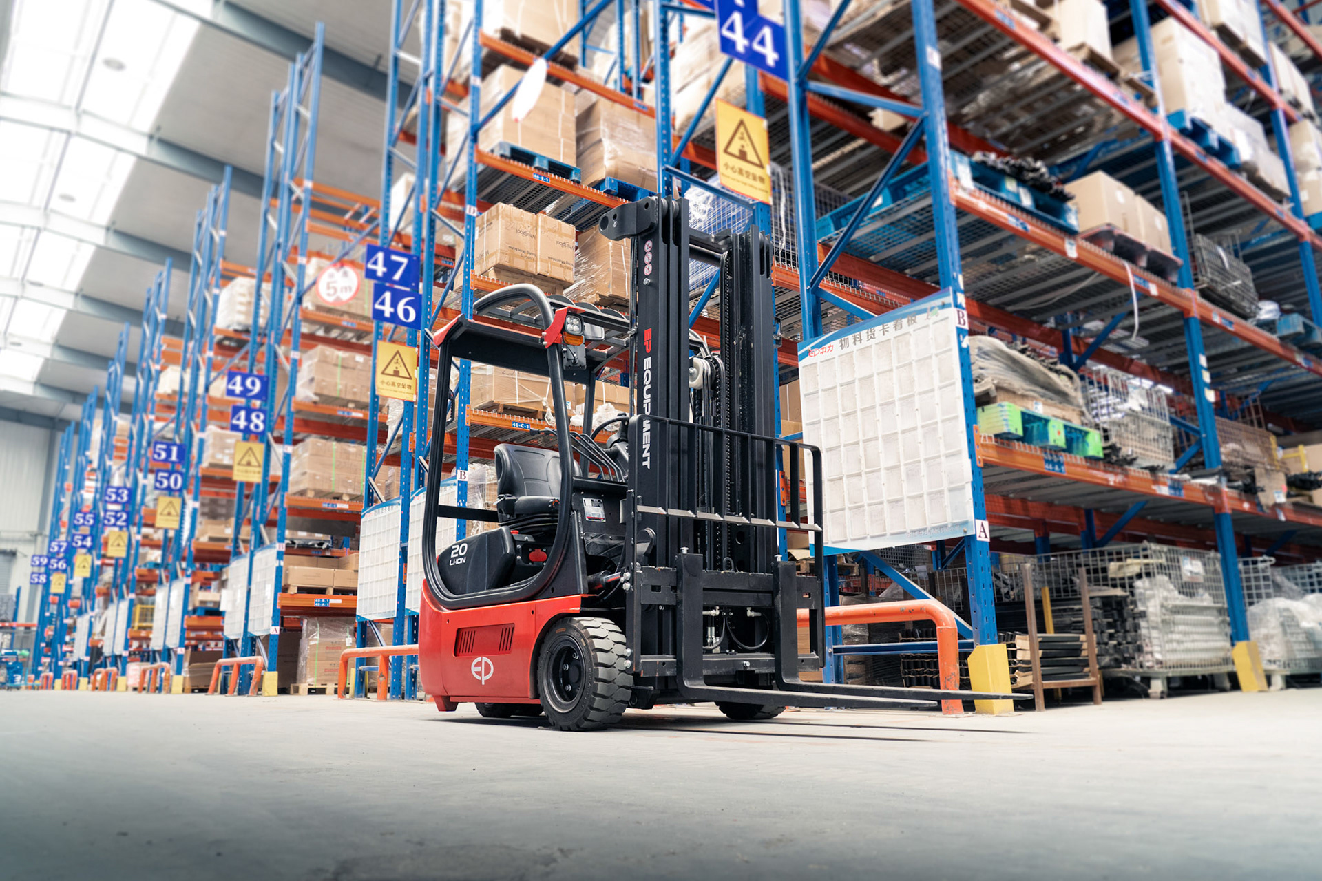 De TDL-serie heeft een lithiumbatterij en 5,4 kW*2 dubbele aandrijfmotoren. Standaard wordt deze truck geleverd met een 48V/50A geïntegreerde lader voor gemakkelijk opladen. Er zijn ook 48V/150A en 48V/200A externe laders beschikbaar als je meer nodig hebt. Ook is het mogelijk om de batterij tussentijds op te laden.